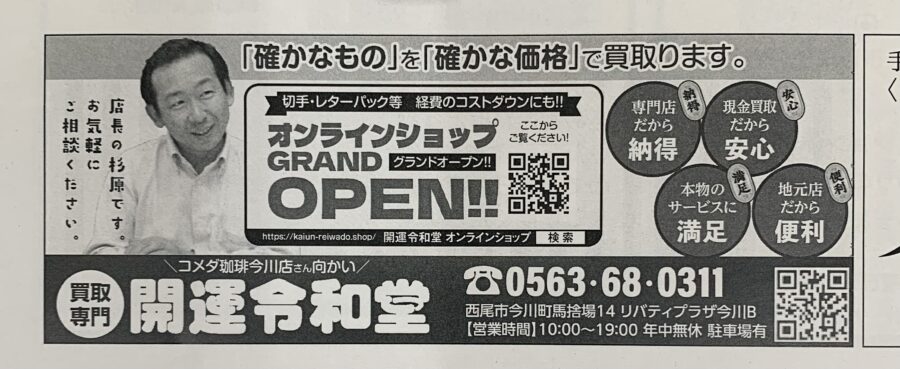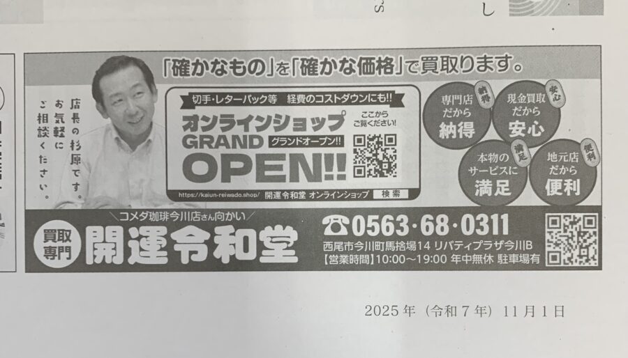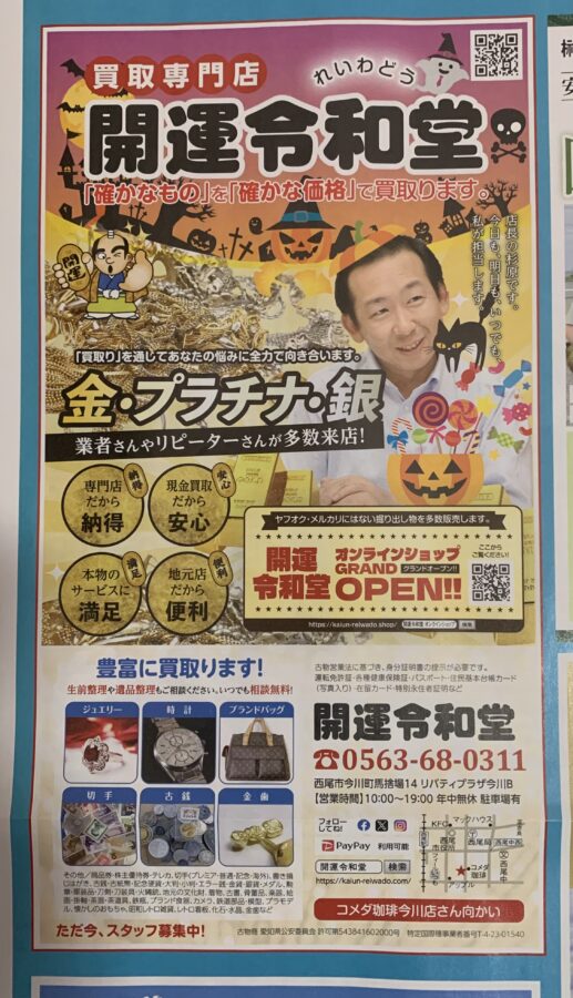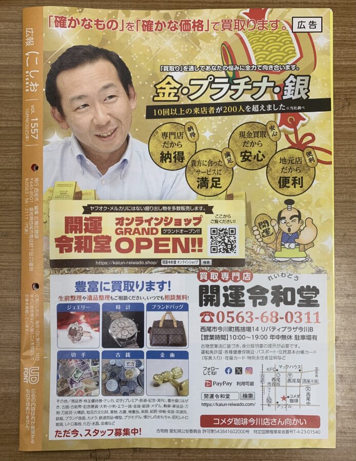 地域情報誌「西尾グッチラ 9/26号」に、当店 買取専門店 開運令和堂 が掲載されました!