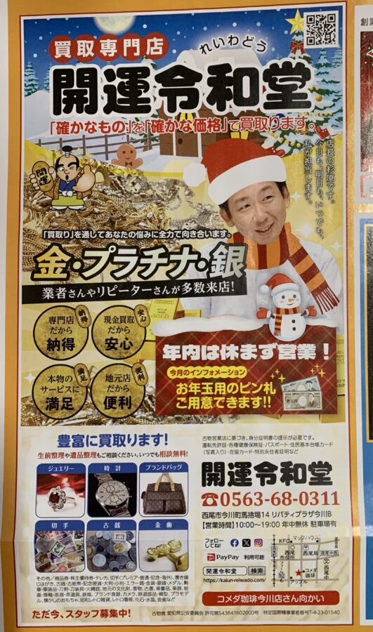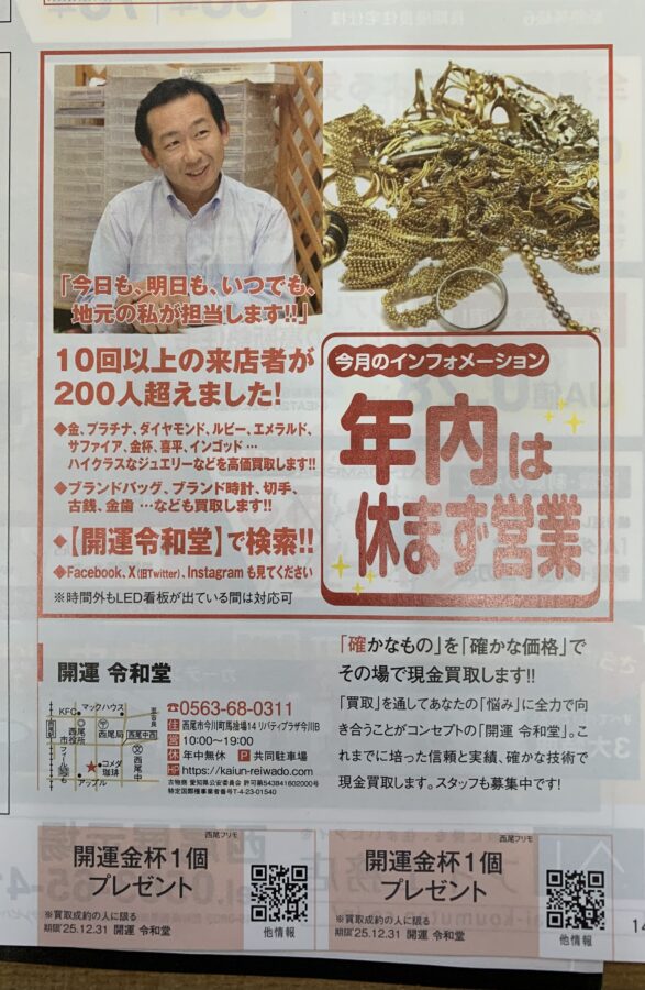 このたび『商工会議所情報 にしお 11月号』に、当店「開運令和堂」が掲載されました。